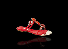В весенне-летней коллекции от Марино Фабиани (Marino Fabiani) определённо доминирует красный цвет. Алая лакированная кожа сразу привлекает внимание, но это не единственное, чем может блеснуть представленная обувь. Выходные туфли украшены крупными пряжками из золотистого металла, а босоножки — стразами и камнями. Изящные туфельки, сабо и босоножки с принтами в виде вишен и бабочек или пёстрой плетёнкой могут стать нарядной парой на каждый день.